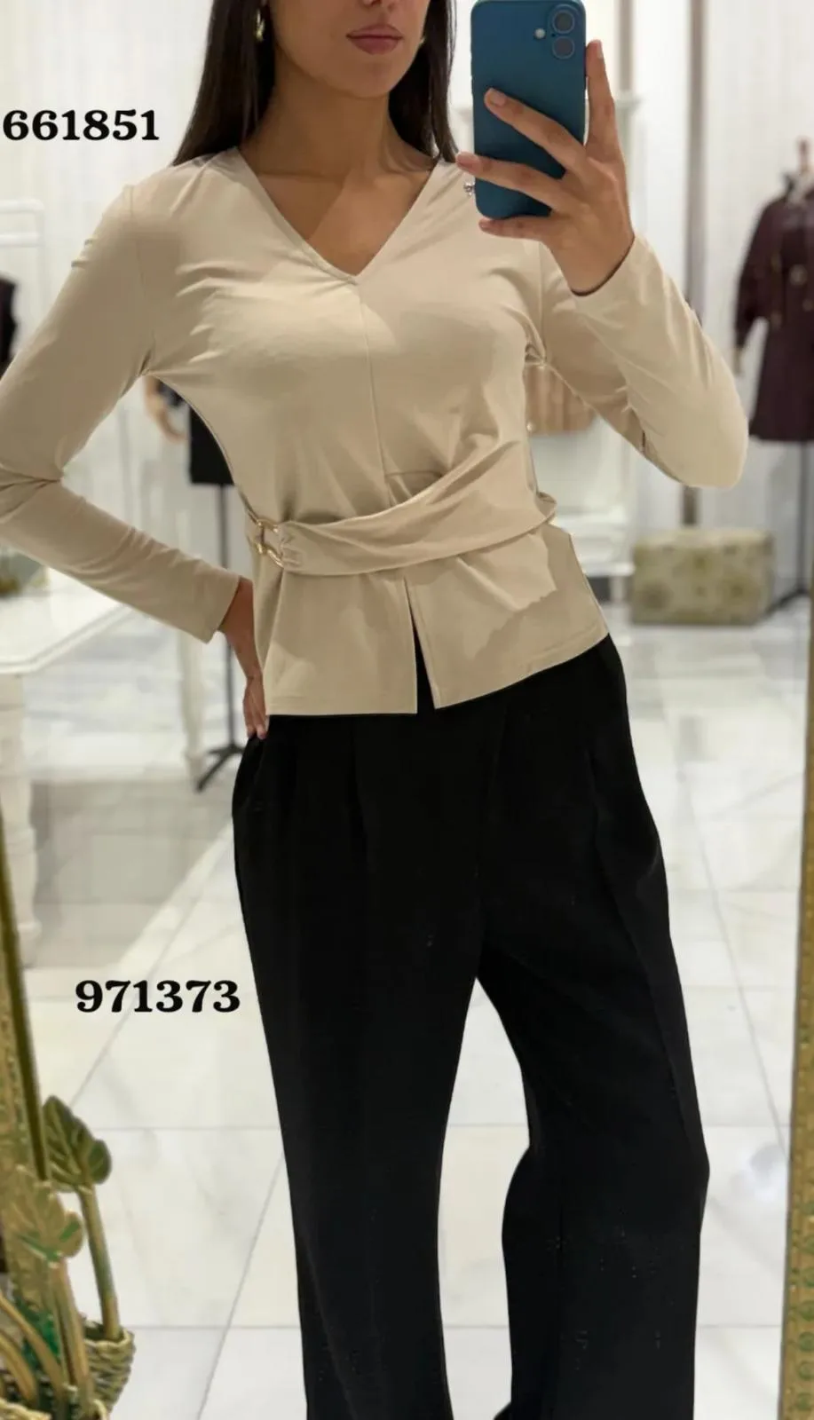 Camiseta en tono beige suave, elaborada en un tejido ligero y cómodo que se adapta con naturalidad al cuerpo. Destaca por un adorno dorado —discreto pero luminoso— que aporta un toque sofisticado y femenino. El detalle metálico realza la prenda sin sobrecargarla, creando un contraste sutil y elegante con el color neutro del fondo.