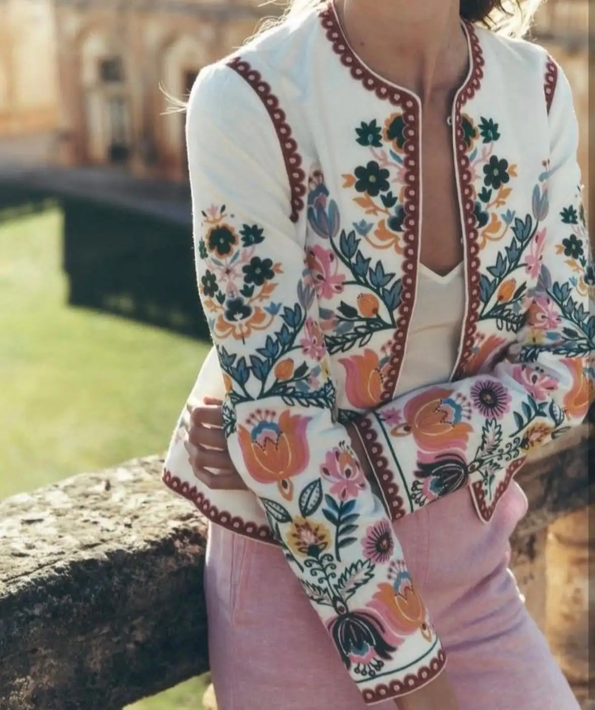 Descubre el equilibrio perfecto entre estilo y personalidad con nuestra chaqueta bordada. Diseñada para destacar, esta prenda combina materiales de alta calidad con delicados bordados que aportan un toque único y sofisticado. Su corte moderno se adapta cómodamente al cuerpo, convirtiéndola en una opción versátil tanto para looks casuales como para ocasiones especiales.