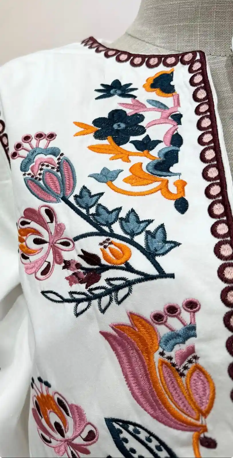 Los detalles bordados, elaborados con precisión, añaden textura y carácter, haciendo de cada chaqueta una pieza especial. Cuenta con acabados cuidados, cierre resistente y un diseño pensado para ofrecer comodidad sin renunciar al estilo.
