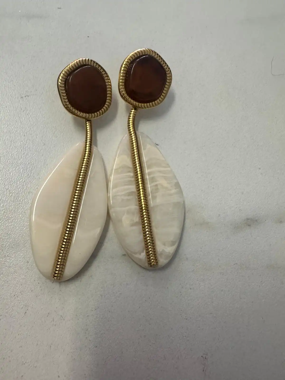 Pendientes nackar marron chocolate/crudo/doradoPendientes nackar marron chocolate/crudo/dorado